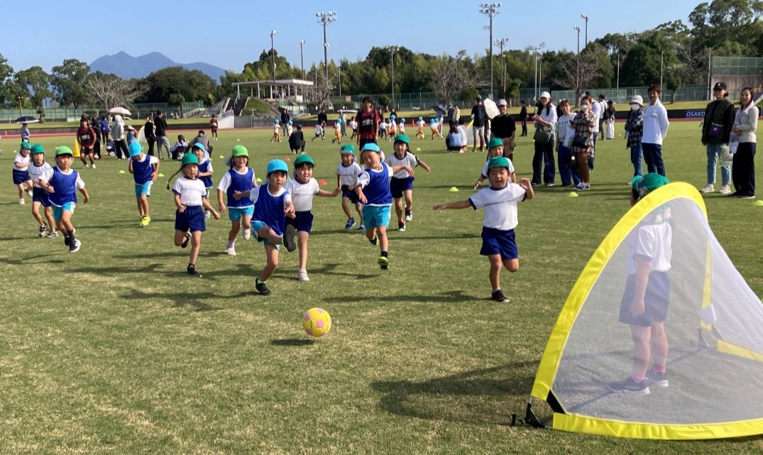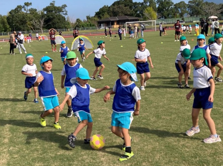 加世田運動公園陸上競技場にて開催された「南さつまキッズサッカーフェスティバル」に,年長組さんが出場しました。