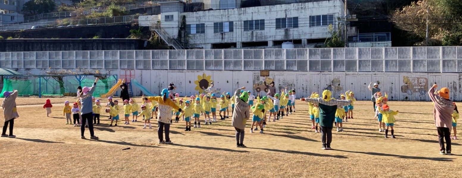 今日は,年中・年長組さんの体育の日。 鳳凰高校体育館で,ボール運動などいろいろな運動を楽しみました。