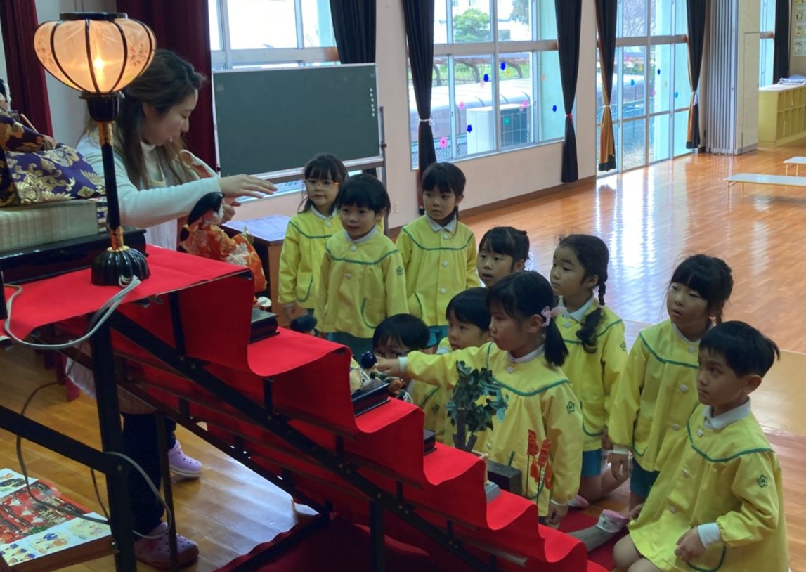 ひな祭り 2026年3月3日 最終更新日時 : 2026年3月3日 しらうめ幼稚園 今日は,桃の節句(ひな祭り)。 おゆうぎ室に飾ってあるひな壇のひな人形を見ながら,ひな祭りにちなんだお話を聞いたり,歌を歌ったりしました。 そして,これからも皆元気よく健康に過ごせますようにとお願いしました。