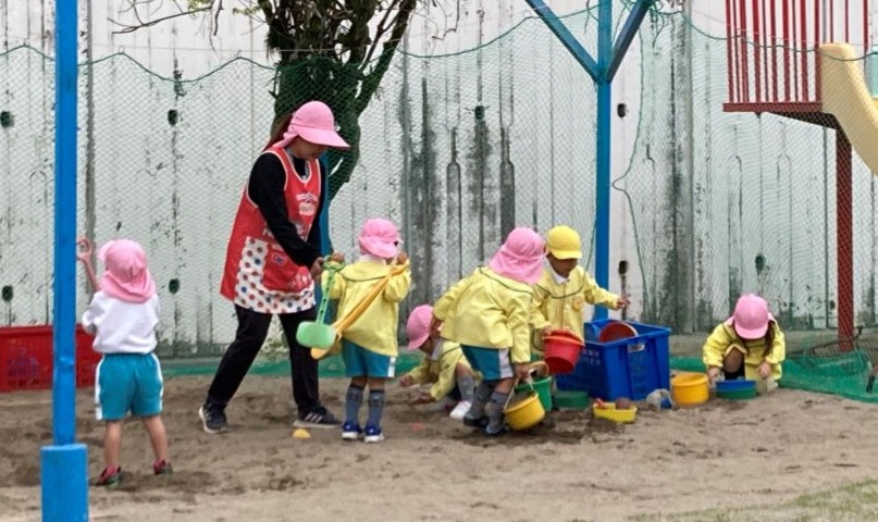 今日は曇り空でしたが,子ども達は元気いっぱい外遊びを楽しんでいました!!