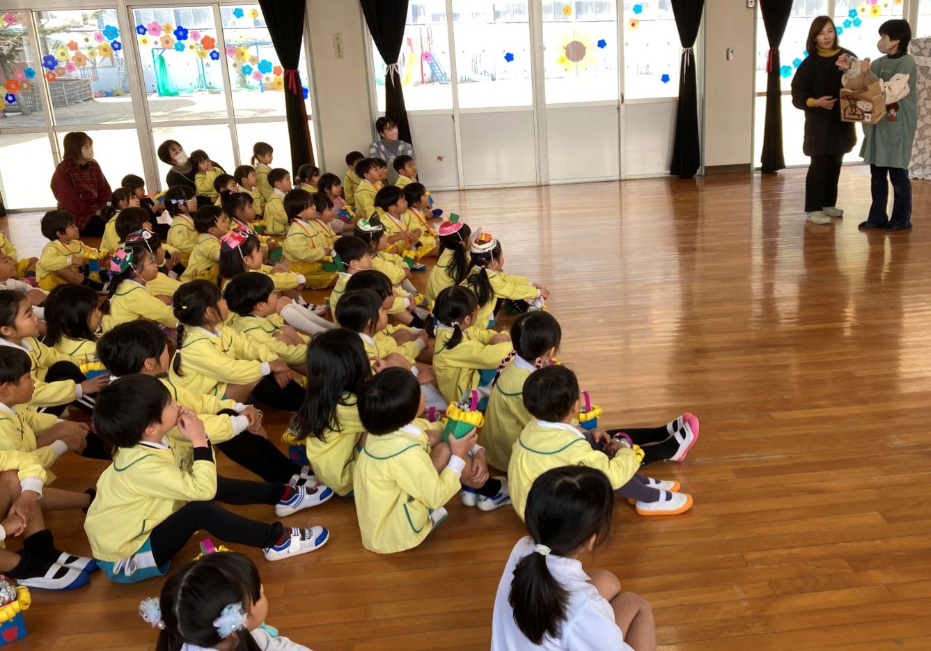 ★6/12(月)に避難訓練を行いました。朝のお集まり時に非常ベルがなり、園内放送で『職員室の湯沸かし室から火災が起きました。先生の話しを聞いて安全な場所に避難しましょう』と流れると、子ども達は真剣な表情でタオルで口と鼻 […]
